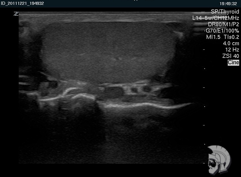 Фото УЗИ мошонки. Нормальная эхо-структура яичка мужчины 22 лет |